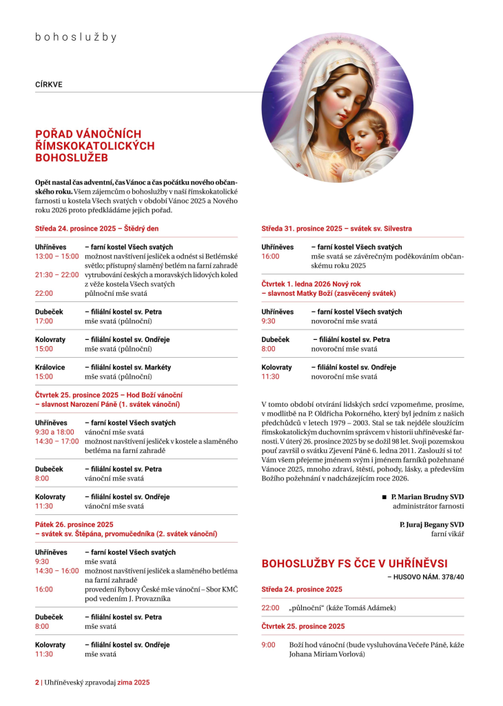 Přehled vánočních bohoslužeb